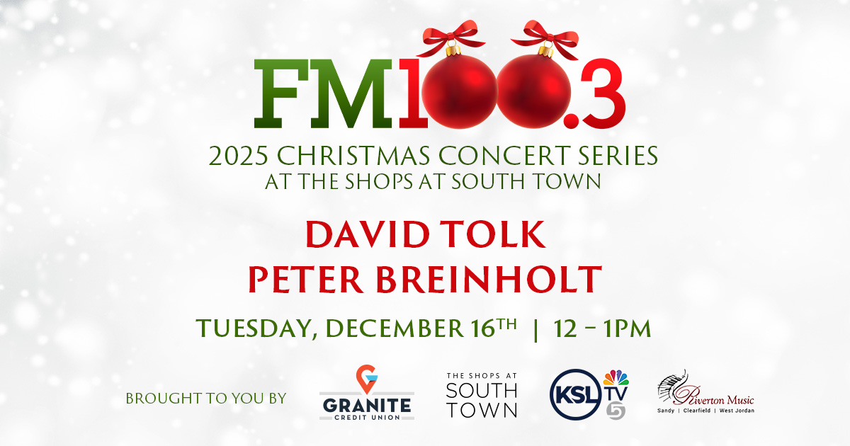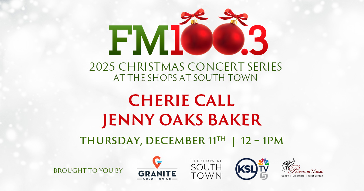 Countdown to Christmas Contests Picture Perfect Christmas 2025 ON AIR: PRIZE CLOSET WITH RUSTY Win a Monster Minky Blanket from FM100.3 Win tickets to see TOTO Win tickets to see Jenny Oaks Baker Win tickets to see STYX & Chicago Events DEC 11 November 24 @ 8:00 am - December 24 @ 9:00 pm The Santa Experience at Jordan Landing DEC 11 November 28 @ 12:00 pm - December 18 @ 5:00 pm FM100.3 Christmas Concert Series DEC 11 December 4 @ 6:00 pm - December 14 @ 10:00 pm ‘Twas the Night Before by Cirque Du Soleil DEC 11 12:00 pm - 3:00 pm Christmas Concert Series – Cherie Call and Jenny Oaks Baker DEC 16 12:00 pm - 3:00 pm Christmas Concert Series – David Tolk and Peter Breinholt